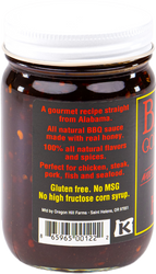 Bama's Sauce is a gourmet recipe straight from Alabama! All natural BBQ sauce made with real honey and 100% all-natural flavors and spices. Perfect for chicken, steak, pork, fish, and seafood. Gluten-free, no MSG, and no high fructose corn syrup!